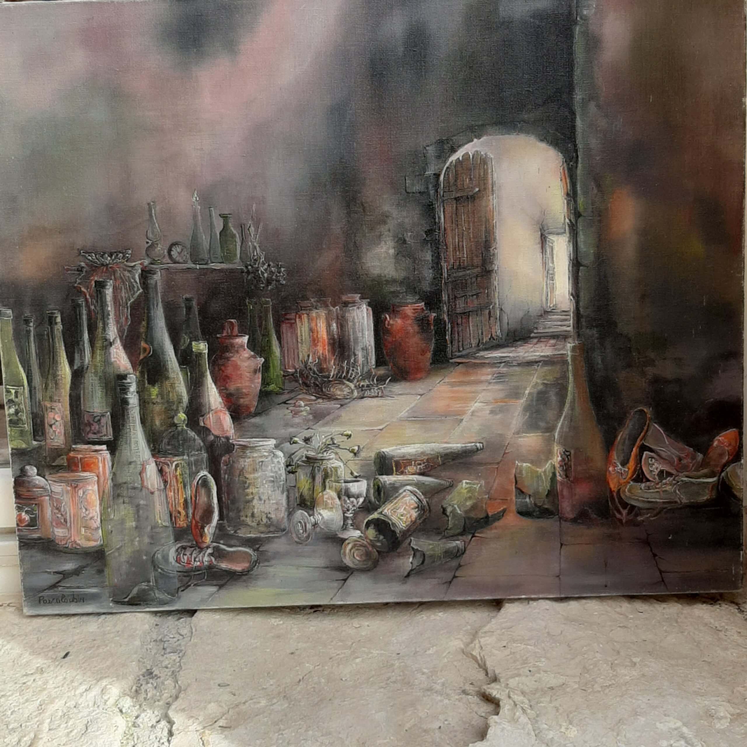 Technique utilisée : huile sur toile avec inclusion d’un miroir